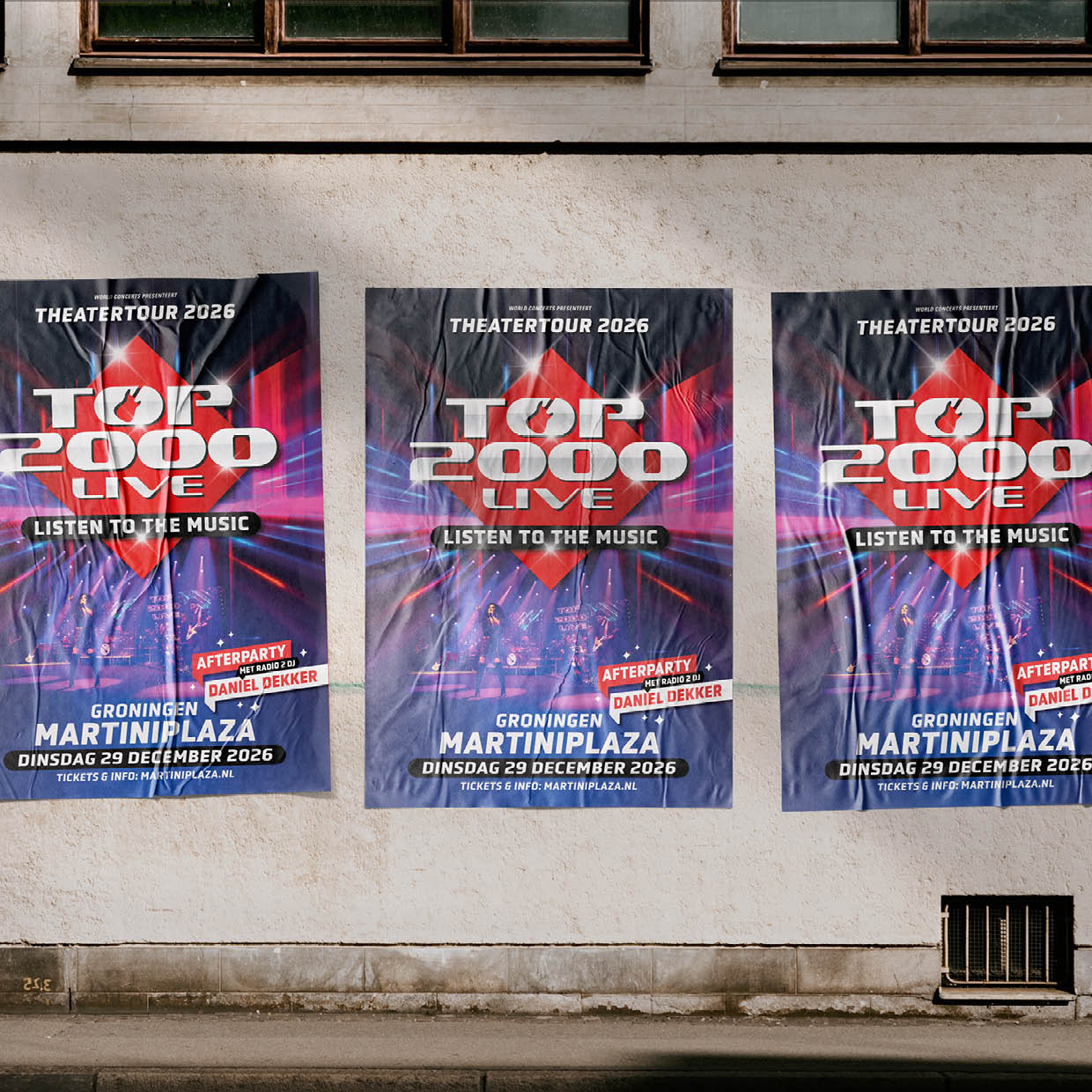 Top 2000 Tour 2026 - Listen To The Music in de Nederlandse theaters. Ontwerp posters en online banners.